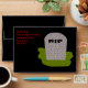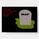 This ghoulish customisable envelope features a grey tombstone with RIP in dripping black text on it, standing on a patch of green grass. Befitting of this morbid design the background is black. This would be a brilliant trick or treat envelope. There is also a matching greeting card available. Just ideal for Halloween.