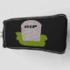 This awesome golf putter cover features a grey tombstone with RIP in dripping black text on it, standing on a patch of green grass. Befitting of this morbid design the background is black.