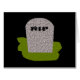 This greeting card features a grey tombstone with RIP in dripping text on it, standing on a patch of green grass. Befitting of this morbid design the background is black. The inside of the card is blank so you can either hand write your message or take advantage of the "customise it" button. By clicking on this button you have the option to type your own text in the card, with the freedom to choose from lots of different colours and fonts. You can also change the background colour of the inside of the card if you would like to.