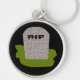 This design features a grey tombstone with RIP in dripping text on it, standing on a patch of green grass. Befitting of this morbid design the background is black.