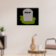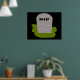This ghoulish print features a grey tombstone with RIP in dripping black text on it, standing on a patch of green grass. Befitting of this morbid design the background is black. The border is grey. This design is available in differeint sized prints, the largest of which is shown here.