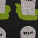 This awesome wallpaper features a grey tombstone with RIP in dripping black text on it, standing on a patch of green grass. Befitting of this morbid design the background is black.
