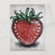 Ripe Strawberry is plump, red and cutely dotted, spotted and fun. In red, green and white with a grey background.