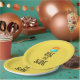 Paper plate with a cute typographical design. A fluffy cloud and an orange sun.