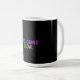 The vibrant, eye-catching gradient text pops beautifully against a sophisticated black background, creating a modern and inspiring look. Its classic white handle and interior offer a striking contrast, making it a standout piece in any kitchen or office.