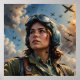 Her determined expression captures the essence of resilience and bravery in the face of adversity, symbolising the untold stories of women in aviation history.