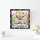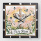 This inspiring square wall clock features a wooden cross draped with white cloth, set against a radiant sunrise and surrounded by vibrant white lilies and delicate blue butterflies. A banner with "He is Risen" in elegant script completes this serene and hopeful depiction of Easter and resurrection.