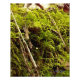 A miniscule mushroom grows amongst the moss.