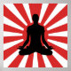 Black Yoga Pose on a red rising sun backdrop, red white and black poster