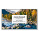 Magnetic business card with a scenic photograph featuring tree covered mountains in autumn colours. A vibrant river flows around some rocks.