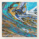 Blues and browns and a hint of purple looking like turquoise waters and natural stones resembling a river running, or waves lapping up on a shore