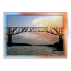 This distinctive postcard features the old rail road bridge, now a walkway, and the ice covered Hudson River with sunset colour.