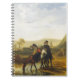 River landscape with riders. Aelbert Cuyp. Classic landscape in warm colours. Two riders stopped to rest by the lake. There are hills in the background. There are clouds in the sky. Reproduction of famous works of art images in the public domain.