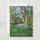 A postcard, with the banks of the River Monnow at Allt-yr-Ynys on a crisp, bright day in early spring. There are daffodils under the trees and snowdrops in the grass, from a soft pastel painting by Judy Adamson.