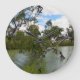 Pictured is a gum tree dipping in its tree branches into the River Murray in Australia