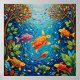 This vibrant Gond-style artwork brings to life a river teeming with fish, birds, and turtles, each element carefully depicted in the bold, colourful patterns that define Gond art. The dynamic scene captures the harmony of nature, making it a perfect representation of the natural world, full of energy and life, through the lens of traditional Indian folk art.