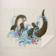 A cute brown river otter playing in the water with flowers in cream coloured backdrop