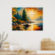 river painting rocky pine forest autumn afternoon poster