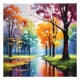 Bring the beauty of nature indoors with this stunning landscape painting. Lush green and fiery orange trees line a sparkling river, creating a scene that is both calming and invigorating. This high-quality print would be a perfect addition to any home or office.
