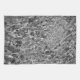 River water rushes over indiscernible rocks creating chaotic ripples and patterns of reflected light in this black and white photograph. The oblong and curving white lines flow around dark obscured rocks beneath the surface to create an abstract photo reminiscent of marble. The stylish photo was taken at a river in the vicinity of Seattle, Washington.