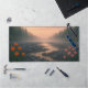 Bring the calm of nature to your workspace with this serene riverbed sunrise desk mat. Flowing water winds through smooth stones, flanked by vibrant orange and pink flowers that contrast beautifully with the misty forest backdrop. Soft hues of dawn light the sky, creating a peaceful and reflective atmosphere. Ideal for nature lovers, artists, and anyone seeking a soothing visual escape in their daily routine.