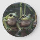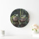 Riverbound Wonders: Two Plump Green Frogs By River Large Clock