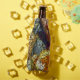 A digitally produce design of pebbles, rocks and autumn leaves at the rivers edge overlaid with a small blocks digital effect.
