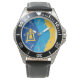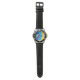 My husband loves the watch, he likes the dial, the graphics, the band, and it keeps perfect time.