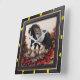 Introducing a stunning horse clock that beautifully captures the essence of equine grace and tranquillity. Featuring a striking image of a Gypsy Vanner trotting along a serene riverbank, this clock is not just a timepiece but a work of art. The clock is elegantly framed by a ½-inch flat black wooden border, which enhances its visual appeal while providing a sturdy structure. The embedded wood showcases deep carvings with a charred, textured grain, adorned with rugged burn marks in shades of red, grey, and black, creating a captivating contrast against the lighter wood. This unique design not only adds character but also evokes a sense of rustic charm, making it a perfect addition to any home or office decor.