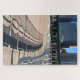 Puzzle features an original photograph of shadows and benches along the pier in Riverside Park, Manhattan, New York City.