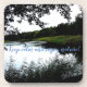 Photo of the banks of a river with branches hanging in the water and reed in the foreground. You can easily replace the words "keep calm and ejoy nature" with your own words. It is the ideal coaster for your garden parties!