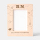 RN Graduation Engraved Frames with graduation cap and the letters RN registered nurse on the top and the name of your grad and the name of the school they graduated from and class year on the bottom. Heart stethoscopes decorate the frame with a graduation cap. Easy to personalise graduation gift. This beautiful etched wood photo frame for nursing grads has a laser-engraved design. With a fold-out stand, it easily props up on any desk, bookshelf, or table. A lovely gift idea for graduating nurses and friends and family of all ages.