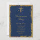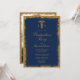 Elegant blue and gold nursing school graduation party invitation featuring RN caduceus, gold glitter frame, and photo on reverse. Copyright Elegant Invites, all rights reserved.