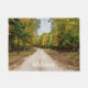 A welcome doormat featuring a gravel road on Kaysinger Bluff during the autumn season in Warsaw, Missouri, United States.