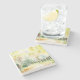 The coasters are gorgeous, a quality feel and heavy weight. They look like a precious archeological find. A rustic stone juxtaposed with a modern floral black and white print. I like the way the print goes slightly imperfect on the cut stone edges giving them a kind-of natural beauty.
