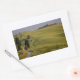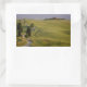 Rectangular souvenir photo sticker of the white gravel road (or strada bianca) to Terrapille agriturismo with cypress trees alongside it in the evening light in the Valdorcia (Orcia Valley) near Pienza in Tuscany, Italy. The road is also called Gladiator Road because the movie The Gladiator was partly recorded here.