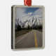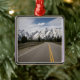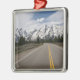 This photo features an empty road leading into the Teton Mountain Range in Wyoming.