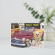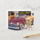 Humorous customizable Funny Pet Postcard with my guys posed in front of a Woodie, thanks to PublicDomainPictures.net (Photographer Michael Miloserdoff)