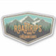 If you love road trips to National Parks, this Sticker is for you! This fun sticker design features a National Parks inspired patch with a row of mountains and trees. The wording on this sticker reads "RoadTrips and Shenanigans" in orange. (The sticker has a slightly distressed look.) These stickers are great for water bottles, laptops, notebooks etc.