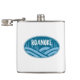 The flask itself is fine. It’s a cheap flask, obviously bought in bulk, however am prepared to overlook that. Given that it is a personalized item, I would have liked to have seen gift boxing instead of the generic packaging. Terrible printing, and/or quality. It’s a cheap, tacky vinyl. It is not cut straight and is also applied in a way that it is overhanging the bottom, causing the glue to catch on items and it will eventually roll and tear, damaging the wrap.