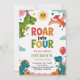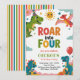 Roar Into Four Cute Dinosaurs 4th Birthday Party Invitation