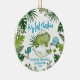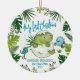 Celebrate your baby's first Christmas with this adorable personalized ornament! On one side, a charming watercolor illustration features the little hatching dino from your baby shower theme, a sweet blue bird, and a dino toy car. The text "My first Christmas" and "the Dino-Mite" is personalized with the baby's name and the year. The reverse side features a special photo of your baby, making this a truly unique and heartwarming keepsake. It's the perfect way to remember their first holiday season and a beautiful addition to your Christmas tree for years to come.