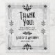 Roaring twenties (roaring 20s) black and white art deco damask personalised wedding wine bottle labels. These personalised art deco wedding wine bottle labels are a great choice for a wedding in any season with an art deco theme. Wording also says thank you. The background is a subtle damask pattern and there is a geometric 1920s (20s) art deco style of border.