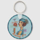 Impress with this cute key chain for an Art Deco Party featuring Lady from the 20's era wearing a blue laced dress and blue hat with feathers.