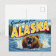 This striking, retro-style design captures the spirit of the Last Frontier. It features bold, vintage-inspired "Greetings from Alaska" typography set against a dramatic backdrop of glacial mountains and dense forests. The centerpiece is a powerful, roaring Grizzly Bear, also known as the Brown Bear, emerging fiercely from the water. This classic artwork is perfect for fans of vintage travel art, wildlife, and the majestic wilderness of Alaska. It makes a wonderful souvenir, travel memento, or gift for locals, tourists, and anyone who loves nature and the great outdoors.