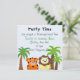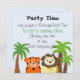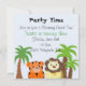 The cutest little tiger and lion accent this fun jungle themed birthday invitation. Palm trees blowing in the background. Customise with all of your personal information as desired. A fun zoo animal invitation.