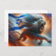 A leaping lion roars with fierce intensity surrounded by dynamic swirls of fire and Israeli flag