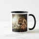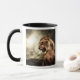 Roaring lioness against stormy sky mug