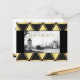 Save the date cards with a gold and black art deco border around a vintage car for Roaring Twenties and Gatsby era theme events. Photograph is personal property of the artist.