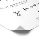 My thoughts on this product was excellent. Well printed in a gloss finishing and just the size l ordered. It arrived in good condition and am overall satisfied with the product. The printing turned out great. I was quite surprised with the finishing touch to the poster. The semi gloss was just right and a perfect size to display at the wedding.